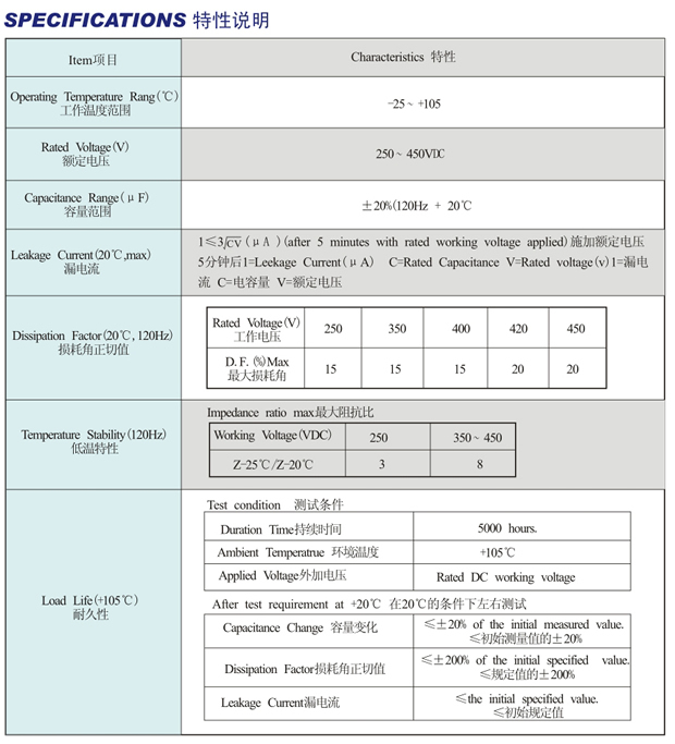 Life Time:105 ℃ ,2000 hours or 85 ℃,8000 hours