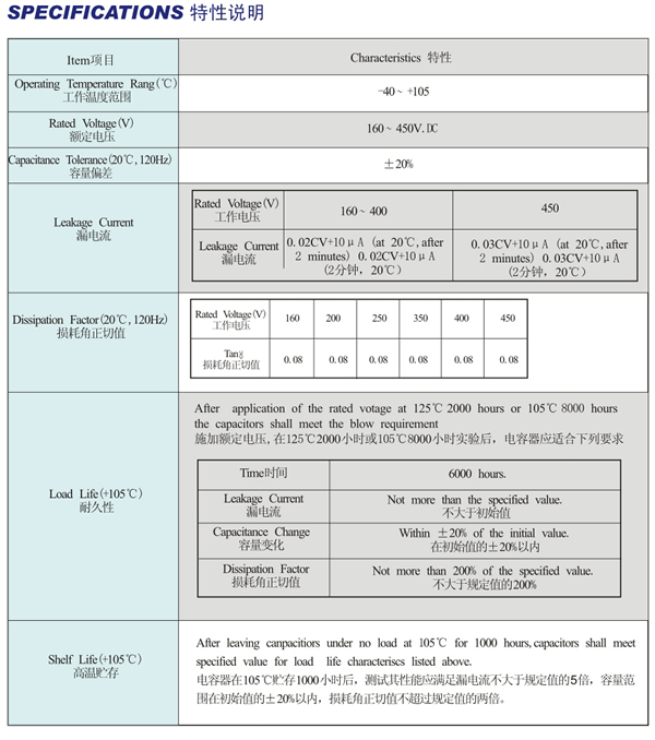 Life Time:125℃,2000 hours or 105℃ ,8000 hours